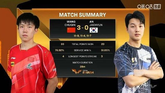 王楚钦3-0横扫安宰贤,晋级中国大满贯男单八强,下轮对松岛辉空