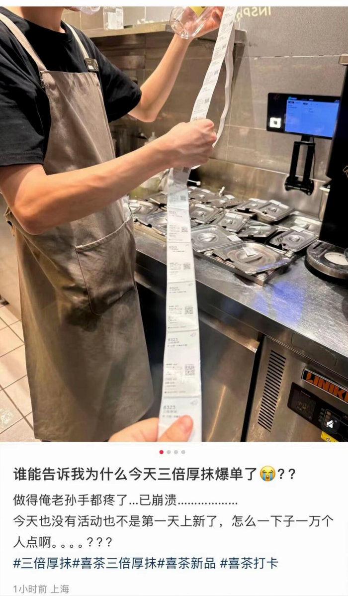 当雷军在挑战视频中再三挽留手中的喜茶“椰椰芒芒”,当Lisa的法拉利副驾上出现喜茶“三倍厚抹”,这两个看似毫无关联的场景,却让喜茶在短时间内收获了现象级曝光。雷军挑战视频在抖音斩获96.9万赞,小红书相关内容点赞超10万;Lisa同款则直接引发门店爆单,被网友戏称“唯一能get的顶流同款”。