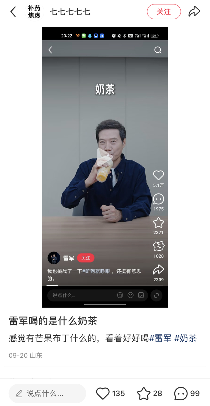 这两起事件能火,还有个关键原因是场景感太足了!雷军的视频里,有个特别有意思的细节:当工作人员提醒他“该继续挑战了”时,他再三挽留,嘴上说着“再喝一口”,那副想喝又怕耽误工作的纠结模样,把喜茶塑造成“好喝到舍不得放下的美味”。网友看完都在评论区玩梗:“雷总挺有品味的,和我一样爱喝奶茶”、“求问那杯奶茶到底有多好喝,能让雷总分心”。