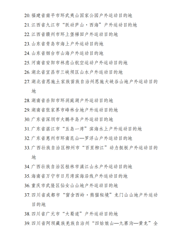 《通知》提出,首批高质量户外运动目的地应进一步提升配套公共服务水平,增强安全保障和应急救援能力,并结合项目建设指南开展项目储备。目的地所在地区体育行政部门要举办丰富多样的赛事活动,积极引入社会力量参与目的地管理运营。