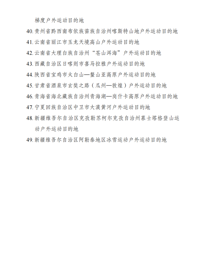 《通知》要求,纳入名单的地区应坚持先规划后建设和生态优先原则,严格遵守生态红线和相关法律法规要求,实现高质量户外运动目的地建设与自然环境和谐共生。